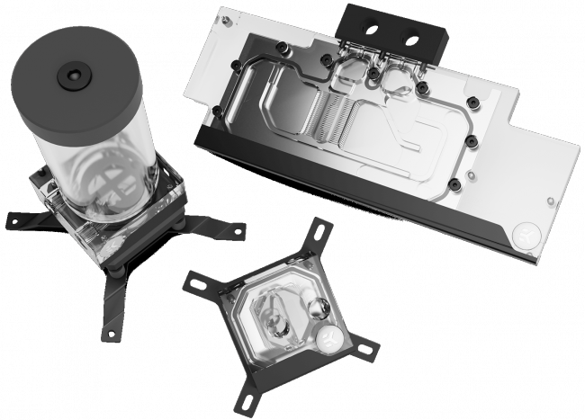 Seulement cinq produits sont pour le moment disponibles à la vente : un waterblock de RTX 2080 / 2080 Ti tarifé à 119$99 ainsi que la backplate correspondante valant 29$99, deux waterblocks CPU (un Intel et un AMD, tout deux non compatibles TR4) à 69$99 chacun, et enfin un combo pompe-réservoir de 140 mm de hauteur, le moteur étant basé sur une EK-SPC60 en PWM, pour un tarif de 89$99. Avis aux amateurs ?
