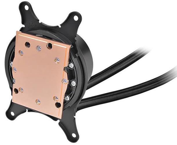 Toutefois c'est la base qui nous pose un souci d'efficacité. Elle est large mais la pompe fait la même taille que les Floe Riing classiques, seule la base semble avoir été agrandie, et ça fait vraiment bricolage si on compare avec celle d'Enermax qui est baignée par tout le liquide, ou même par celle du Silent Loop 240 avec adaptateur TR4. Cela devrait être bien moins efficace qu'une vraie base complète refroidie par le liquide, ce qui explique que le TDP max n'est que de 250W là où Enermax est à 500W. Ca doit suffire ce genre de bricolage sur le refroidissement, mais l'impression laissée par les découpes hasardeuses sur les fixations...
