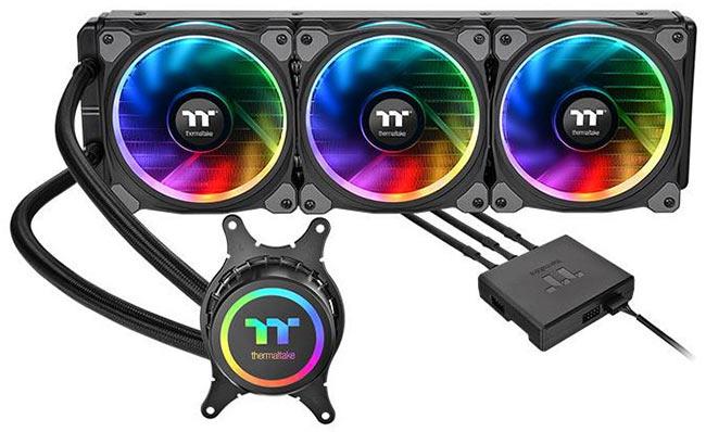Enermax avec ses LiqTech 2 TR4 propose des AIO spécifiques pour le TR4. Désormais il n'est plus seul puisque Thermaltake ce jour annonce un engin de 360mm avec base adaptée également. Le Floe Riing est un bousin de 360mm donc, utilisant 3 moulins Riing Plus RGB qui pédalent entre 1000 et 2000 tours par minute, pour un débit d'air de 26.3 à 54.4 CFM et des nuisances sonores mesurées dans l'espace silencieux entre 21.8 et 33 dBA.