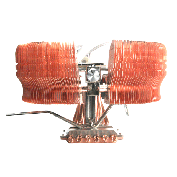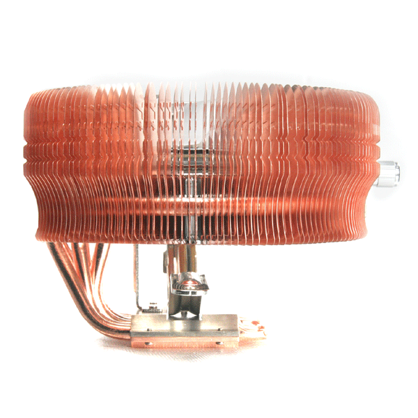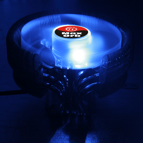 Thermaltake bien connu dans le monde du refroidissement souhaite apporter un peu plus de froid à vos CPU et vient d'annoncer le MaxOrb EX. Le design reste assez commun mais le constructeur a mis l'accent sur un maximum de caloducs. Ce ventirad est en effet doté de 6 caloducs en cuivre d'un diamètre de 6mm chacun qui remontent pour s'entourer autour d'un bloc de dissipation à aillettes en cuivre lui même surmonté par un ventilateur de 120 mm qui tourne entre 1300 et 2000 tours/min et devrait génerer des nuisances sonores comprises entre 16 et 24 dBA. Le tout pèsera 580 grammes et conservera une taille relativement compacte. Il sera compatible avec les sockets LGA 775, AM2, AM2+, 939 et 754. Petite touche design pour les geeks pour avoir un PC comme bossracuda : la petite lumière bleue dans la nuit :-) Plus d'images en suite de cette news.