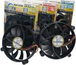 Scythe vient en effet d'annoncer, mais pas encore pour l'Europe, l'arrivée d'une nouvelle gamme de ventilateurs qui pourrait s'avérer très intéressante pour les amateurs de refroidissement. Les Kaze Maru seront en effet des ventilateurs de 140mm de diamètre, mais disposant de fixations 120mm ce qui leur permettra d'être adaptables sur la plupart des boîtiers et ventirads initialement prévus seulement pour du 120mm. Trois vitesses de ventilation seront proposées: 500tpm pour les amateurs de silence sur le modèle "L" ; 1200tpm pour un bon compromis avec le "M"; et 1900tpm pour ceux qui veulent les performances avant tout avec le "H". Ces ventilateurs reprennent en plus le principe des célèbres SlipStream, avec un rotor de faible taille et 9 grandes pales, de quoi assurer des débits d'air impressionnants. Scythe parle d'ailleurs de plus de 100CFM pour la version 1900tpm. Pas de prix ni de disponibilité indiqués pour le moment, mais vue la politique tarifaire agressive de Scythe on peut à priori tabler sur du 12 à 15€. A noter que les plus observateurs auront certainement remarqué que ce ventilateur n'est pas totalement nouveau, puisque la version "L" à 500tpm équipe déjà depuis plusieurs mois le Scythe Orochi. (Source: Cowcotland)
