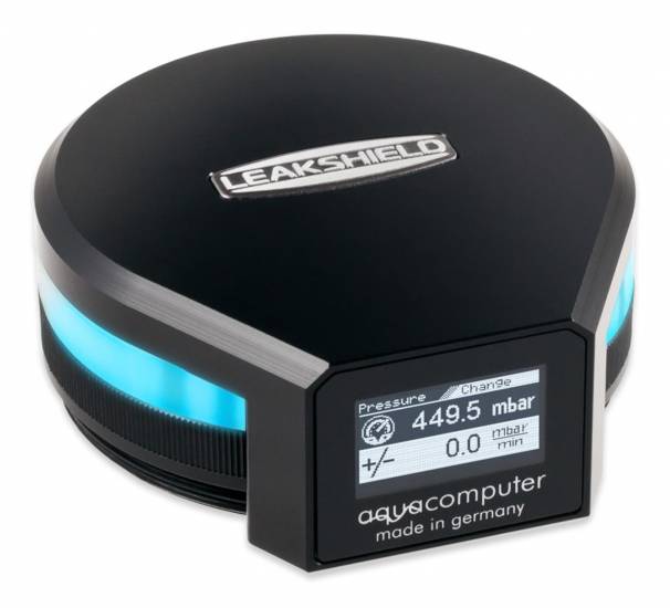 Pour remédier à cette éventualité, les ingénieurs de chez Aqua Computer ont bossé dur pour mettre au point le LEAKSHIELD, un bousin magique à brancher dans votre circuit pour vous protéger des ces leaks. Comment cela ? En fait, ce petit module, équipé d’un écran OLED 128 x 64 px, va légèrement mettre votre système en sous-pression. De ce fait, si une fuite s’amorce, la pression va remonter, mais le LEAKSHIELD va, à son tour, aller pomper de l’air en dehors afin de maintenir une pression constante et faire rentrer de l’air par la fuite, et non sortir du liquide. La solution, temporaire, permet de maintenir le PC à flot — rires — le temps de l’éteindre et d’intervenir sur la boucle, qui peut être en tuyaux rigides comme souples. Attention, si le LEAKSHIELD sait pallier une légère fuite mineure, cela ne signifie pas pour autant que votre système en ressortira indemne si la situation se prolongeait sur le long terme, la présence d’air dans l’eau favorisant grandement la corrosion.