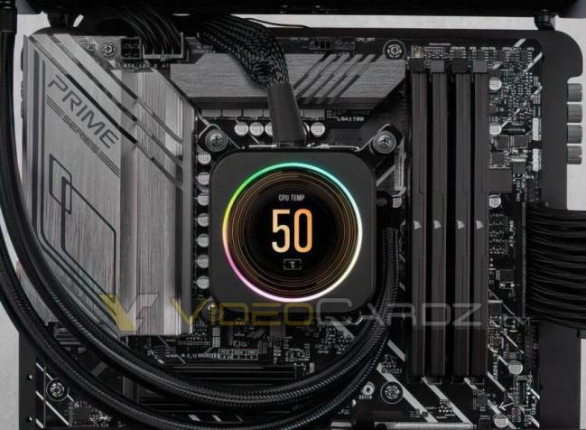 Corsair a fait du teasing un peu poussé avec ses futurs AIO. Un modèle a été dévoilé, en trônant fièrement sur une ASUS Z690 pour Alder Lake, avec les Corsair Vengeance DDR5 que nous vous avons présentés il y a quelques jours. Le timing est bon pour la firme, et c'est une petite évolution esthétique, puisqu'il y a un écran sur l'ensemble pompe+waterblock, qui affiche donc des infos comme la température CPU, ou la vitesse de rotation de la pompe.
