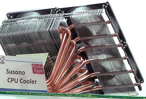 La marque Scythe est toujours attendue sur les salons pour pouvoir admirer des prototypes monstrueux de ventirads. La firme avait ainsi marqué les esprits avec le "Godhand", un monstre doté de 10 caloducs qui tenait lors du CeBIT de 2009 à l'aide d'un filin métallique ! Lors de ce CeBIT 2010, Scythe vient de répondre à toutes les attentes d'énormité que l'on pouvait avoir en proposant un ogre qui relègue le Godhand au rang de radbox quasiment. Une nouvelle page de l'histoire des prototypes de folie est tournée avec le Susano.