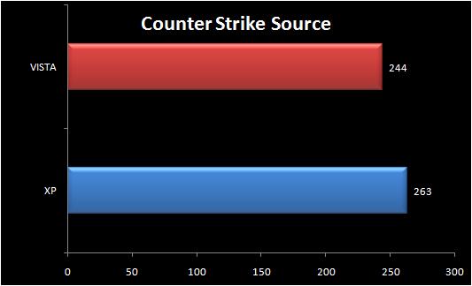 Basé sur le moteur de HL2 tout comme CSS, on retrouve un comportement similaire à ce dernier avec un léger retard de 5% coté Vista.