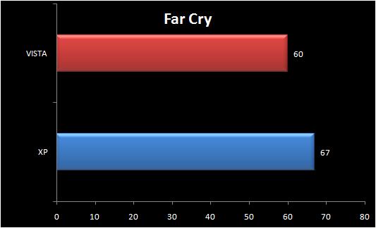 Désavantage plus marqué (10%) avec Far Cry pour Vista face à XP. Bien qu'ancien, dans ces conditions, le jeu demeure superbe.