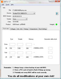 MKVTECH vient de mettre à jour son logiciel NiBiTor qui pour rappel est le diminutif de NVIDIA BIOS Editor. Comme son nom l'indique, ce logiciel va vous permettre de vous faire un BIOS perso pour votre carte NVIDIA, avec les réglages que vous souhaitez. Manipulation réservée aux connaisseurs car pouvant être "dangereuse", mais intéressante pour qui s'y connaît ! Cette nouvelle version 5.5 supporte de nouvelles cartes avec les GeForce 210, GT200, GT230, GT240 et GTS250M. Des corrections ont aussi été apportées et pour ceux qui se demandent où en est le support du Fermi, sachez que la version est déjà prête mais pour l'instant réservée aux donateurs, il faudra donc attendre pour que cette version soit "publique".
