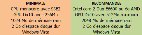 Nos confrères de yougamers ont divulgué les configurations minimale et recommandée pour faire tourner le futur benchmark de Futuremark, 3Dmark Next. Ce benchmark sera compatible avec Vista seulement car testant les cartes graphiques DX10 avec DX10. (cliquez sur image pour agrandir)