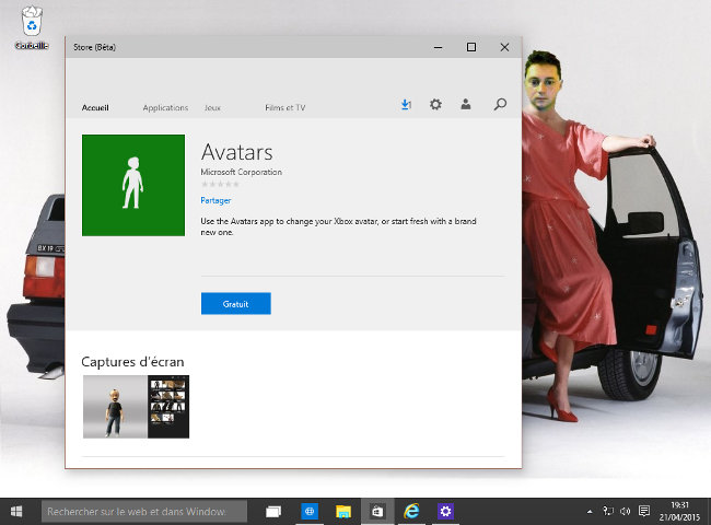 Lors de la présentation de Windows 10, Microsoft avait mis l'accent sur le fait que les applications qui fonctionneraient sur une plateforme pourraient aussi le faire sur les autres. En voici un premier exemple avec l'application "Avatars" qui apparaît sur le Windows Store (de Windows 10 uniquement) alors qu'elle vient de l'univers Xbox. C'est l'outil qui permet de modifier la gueule de l'avatar qui apparaît dans le menu de la Xbox One.