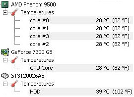 On l’a vu avec CPU-Z et GPU-Z, la mode est aux petits programmes qui se téléchargent et se lancent rapidement, raz le bol des usines à gaz. C’est dans ce contexte que l’auteur de CPU-Z nous propose CPUID Hardware Monitor qui se présente sous la forme d’un simple exécutable et qui permet d’afficher les valeurs de toutes les sondes présentes dans le PC. Vitesse de rotation des ventilateurs ; tensions mesurées par la carte mère ; températures du processeur, des disques durs, de la carte graphique, tout y passe…tout simplement merveilleux. (Source : TT-Hardware)