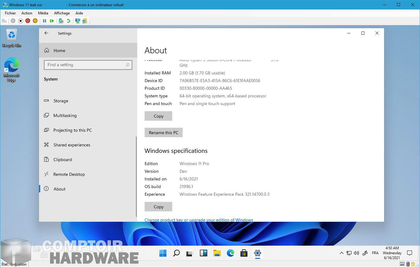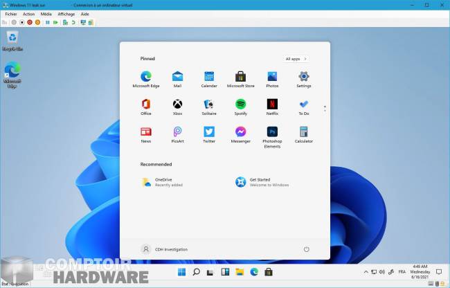 Les rumeurs autour de Windows 11 finissent par faire une publicité intéressante pour Microsoft, car cela oriente le regard des passionnés d'informatique vers l'éditeur, qui s'amuse à faire des petits teasing et troll par-ci par-là . Toutefois, aujourd'hui nous allons enfiler de très grosses moufles, puisque nous ne pouvons totalement assurer la fiabilité de la fuite qui circule depuis hier soir sur la toile. En effet, une ISO qui aurait fuité permet d'installer une version très beta de Windows 11, permettant de découvrir le potentiel nouvel OS. Et le Comptoir a réussi à mettre la main dessus, afin de vérifier de nous-mêmes ce qu'il en est, ainsi que de vous faire de magnifiques captures d'écran, avec comme configuration l'utilisation d'Hyper-V pour émuler de manière sécurisée cet OS.