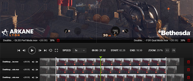 Malgré tout, s'il faut bien reconnaitre une qualité à Nvidia, c'est de proposer des outils permettant aux testeurs, mais aussi aux utilisateurs de vérifier leurs propres dires. On pense ainsi à Frameview, mais aussi à Reflex Latency Analyser entre autres. Et un nouveau voit le jour, ICAT pour Image Comparison & Analysis Tool. Même les anglophobes ont dû saisir le sens, puisqu'il s'agit d'un outil de comparaison d'images, même si ce terme est légèrement restrictif. En pratique, c'est un logiciel de montage vidéo qui va permettre la comparaison parfaitement synchronisée de 2 à 4 séquences vidéos côte à côte (et possibilité de capturer des images parmi celles-ci bien entendu). Rien de nouveau sous le soleil pour les adeptes de Vegas Pro ou Da Vinci Resolve pour ne citer qu'eux, toutefois ICAT est gratuit et beaucoup plus simple d'emploi, car se limitant à cet usage.
