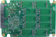 Côté PCB, la principale différence provient du fait que sur les versions 80 comme 160, une seule face est utilisée alors qu'il en fallait 2 sur la première révision et ce dans les 2 capacités. Les puces Micron/Intel (partenariat des deux sociétés dans le domaine des puces Flash) sont au nombre de 10 (une par canal mémoire) et sont produites à l'aide du nouveau procédé de gravure 34nm (50nm auparavant) du tandem. La référence du contrôleur évolue également légèrement sans que l'on connaisse précisément tous les tenants et aboutissants de cette révision. Dernier point notable, le cache externe passe de 16 à 32 Mo via une puce Micron de cette capacité et non plus Samsung comme c'était le cas pour les premiers X25-M.