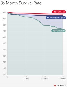 Backblaze est une société qui propose de sauvegarder ses données en ligne. Oui, du cloud quoi. Pour proposer ce service ils ont besoin d'un bon gros data center et d'après vous qu'est ce qu'on trouve à l'intérieur de leurs locaux ? Oui ! Des disques durs par milliers ! C'est sur la base de leur parc qu'ils ont analysé la durée de vie de solutions de stockage de 1,5To, 3To et 4To pour les marques Hitachi, Western Digital et Seagate.