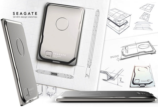 Commençons par le Seagate Seven, dont l'image ci-dessous montre un disque très orienté design mais aussi finesse : 7mm d'épaisseur pour 150g, pour un disque de 500Go. De quoi revendiquer le disque le plus fin au monde, rien que ça ! Le fabricant a du mettre à nu le disque (d'une épaisseur de 5mm) pour arriver à cet exploit technique. Il exploite une interface USB 3 et se démarquera surtout pour son côté esthétique, car les performances ne semblent clairement pas être le point visé par le fabricant. Il faudra tout de même compter 100$ pour ce disque de 500Go...