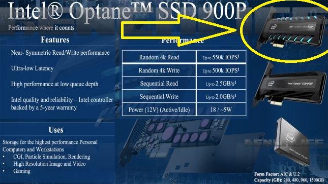 Intel avait lancé ses Optane 900P l'année dernière en octobre, grosso modo des SSD testiboullés pas des plus abordables et faisant usage de la 3D Xpoint si chère à Intel. Certains se souviendront peut-être aussi qu'une page d'un slide de mai 2017 dévoilait un modèle équipé d'un éclairage LED, mais dont nous étions sans nouvelles depuis. Il y a quelques jours, l’existence de nouveaux modèles SSD Optane a néanmoins finalement été confirmée officieusement avec de nouvelles références faisant surface dans les catalogues virtuels de certains revendeurs en ligne.