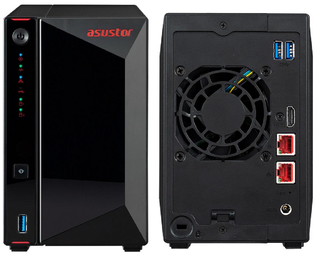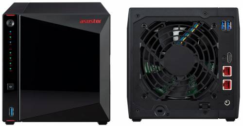 Les deux NAS on en commun l'esthétique héritée des AS400xT, avec un design en diamant assez réussi. On trouvera des pointes de rouge sur le logo de la marque notamment et les ports RJ45 à l'arrière, rendant les boîtiers moins sages que leurs prédécesseurs. Ils sont équipés de trois ports USB 3.2 Gen 1 (donc USB 3.0 si l'on suit la vague de renommage) dont un en façade, une sortie HDMI 2.0a pour la transmission de flux vidéo 4K HDR et de deux ports RJ45 à la norme 2.5 GbE, agrégables s'il-vous-plait !