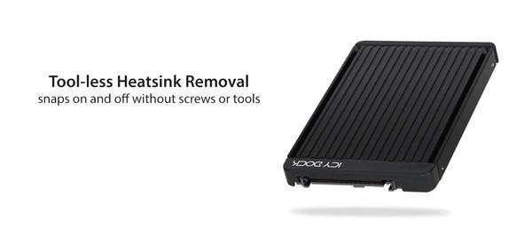 On notera la sympathique idée de transformer la partie supérieure du boîtier - lui-même entièrement en aluminium - en un radiateur au moyen de discrètes ailettes et de pads thermiques pour faire contact avec le SSD. De plus, la partie inférieure est pourvue de trous afin de maximiser le flux d'air, sachant que la partie trouée est elle-même détachable (définitivement par contre) afin de placer un radiateur directement sur le disque. Pour un prix d'une quarantaine de dollars et une garantie de trois ans, voilà qui devrait faire l'affaire de quelques enthousiastes !