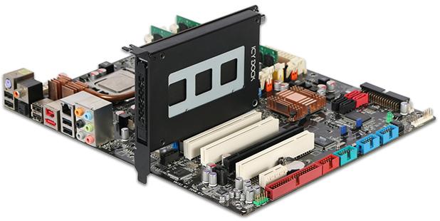 Après avoir bien comblé toutes les fentes pouvant être disponibles sur la façade d'un boîtier avec toutes sortes d'alternatives pour y caser un maximum de bytes, Icy Dock tourne maintenant aussi son regard envieux vers le postérieur du PC et ses emplacements PCI - plus ou moins nombreux et potentiellement sous-exploités !