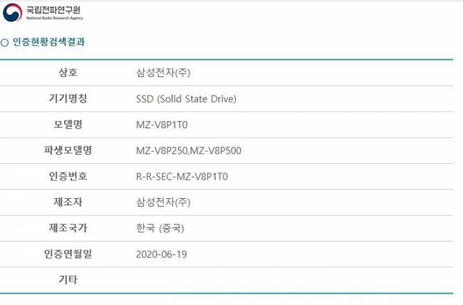 Qu’est-ce qu’on y apprend ? Eh bien pas des masses, si ce n’est que 3 modèles de 980 PRO ont été enregistrés, MZ-V8P1T0, MZ-V8P250 et MZ-V8P500, correspondant logiquement à des capacités de 1 To, 500 Go et 250 Go. Ça parait un peu faiblard à notre époque, on attendrait donc toujours pour voir des SSD NVMe de capacités supérieures à 2 To chez Samsung, peut-être plus tard. Cela dit, ces capacités réduites suggéreraient que la série 980 PRO exploiterait toujours de la NAND MLC (2 bits par cellule), l’une des caractéristiques ayant fait la bonne réputation d'endurance et de performance des séries précédentes, accouplée à un contrôleur maison en mesure d’exploiter les avantages d’une interface PCIe 4.0 x4.