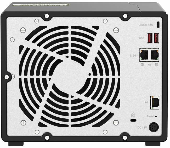 Alors qu'avons-nous là ? Eh bien déjà un modèle embarquant 5 baies en 3.5" ainsi que quatre baies 2.5", le tout avec deux emplacements NVMe PCI-e 3.0 en X4. Oui, il y a de quoi faire et positionner des quantités importantes de stockage. Le processeur installé dans cette bécane n'a pas vraiment à rougir, puisque nous avons affaire à un AMD Ryzen Embedded V1500B, un quadcore avec SMT, pour un total de 8 threads, le tout moulinant à 2.2 GHz. Pour épauler le CPU, on trouve 8 (modèle de base) à 32 Go de mémoire vive DDR4 au format SO-DIMM, en 2X16 Go, ce qui est déjà le maximum installable sur l'engin - m'enfin vous ne risquez vraiment d'être limité pour le coup. Au niveau de la ROM on trouve 5 Go réservés au système et aux applications, un dual-boot est présent, ce qui permettra de démarrer en cas de pépins. Au niveau des connectiques réseau, on trouve deux ports 2.5 GbE - c'est la base chez Qnap - et un port 10 GbE en supplément, autant dire que vous avez tout ce qu'il faut. Ensuite viennent s'ajouter un port USB Type-C 3.2 Gen2 ainsi que trois Type-A également 3.2 Gen2. Au niveau de la consommation, cela se fera via un bloc externe de 120W pour une utilisation typique fixée à 55W.