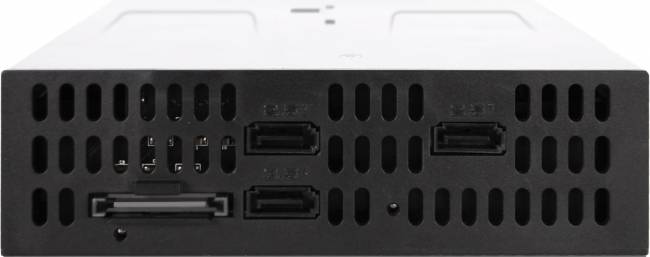 Bien entendu, il faut au préalable brancher tout ça, une prise SATA 15 broches pour le jus et 3 prises SATA 7 broches pour les données, à clipser dans leur prise mâle correspondante. Les autres détails à connaître sont la présence d'un clapet autorétractable anti-poussière pour l'emplacement 3,5" et les ouvertures dans le panneau arrière pour une ventilation naturelle. Pas d'habillage pour la façade, les supports 2,5" dépasseront même un peu, ce n'est clairement pas fait pour être joli, mais surtout fonctionnel et pratique.