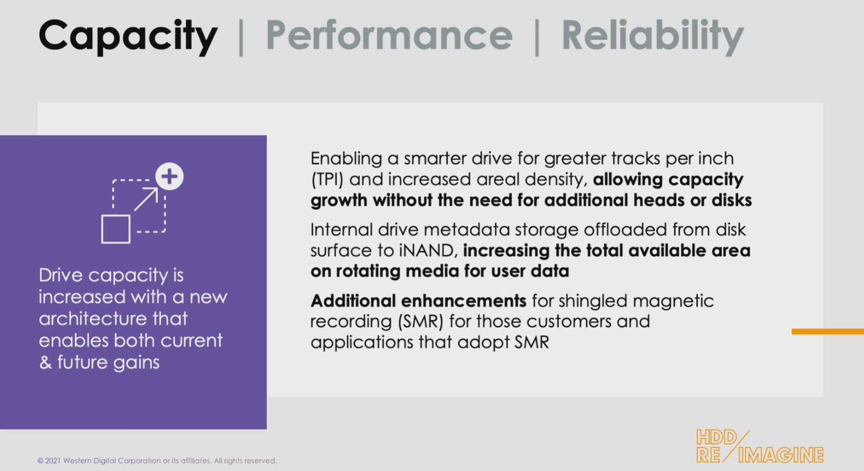 Bien que le SSD lui fasse la misère, le disque dur reste imbattable pour bien des usages et les fabricants n'ont pas pour autant cessé d'essayer de continuer à améliorer les choses. Par exemple, outre l'usage désormais répandu d'hélium chez les constructeurs, ces derniers ont également redoublé d'efforts dernièrement pour faire avancer le disque dur avec de nouvelles technologies plus adaptées aux besoins contemporains et futurs, comme HAMR (chez WD), MAMR (chez Seagate), et les dérivés comme l'ePMR (chez WD) et FC-MAMR (chez Toshiba), mais aussi Mach.2 (chez Seagate), la première technologie à double actionneur du marché permettant un doublement des débits. En somme, le disque dur est loin d'avoir dit son dernier mot et Western Digital annonce aujourd'hui qu'il est allé jusqu'à « réimaginer le HDD » !