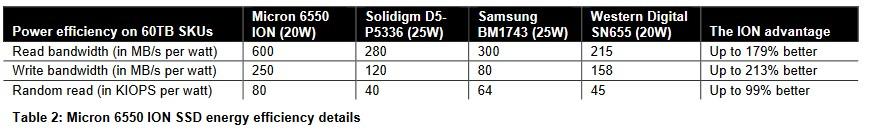 Micron arrive un peu après la bataille, mais vante l'efficacité énergétique de son SSD par rapport aux offres concurrentes. Elle précise que c’est le premier SSD de 60 To qui prendre en charge l'OCP 2.5 avec gestion active de l'énergie (ASPM).