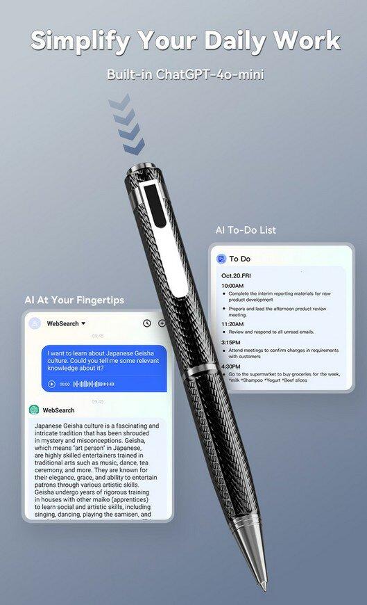 Pour passer en version stylo IA, l’engin a besoin d’un intermédiaire (un smartphone, une tablette ou un PC pour reprendre la liste fournie). Via la plateforme Hearnit.ai, il peut ainsi exploiter des LLM. L’auteur fait explicitement référence à ChatGPT-4.0-Mini.