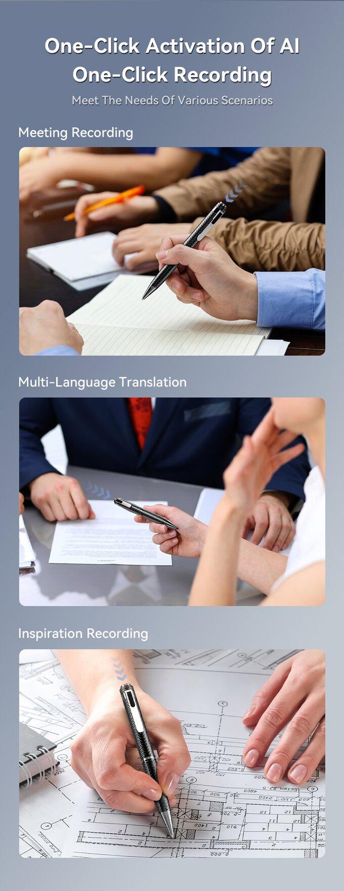 En théorie, The One Smart AI Pen propose diverses fonctionnalités, telles que la traduction, l’enregistrement ou encore la conversion de l’écriture manuscrite en texte numérique. Concrètement, la page liste les cinq modes ci-dessous :