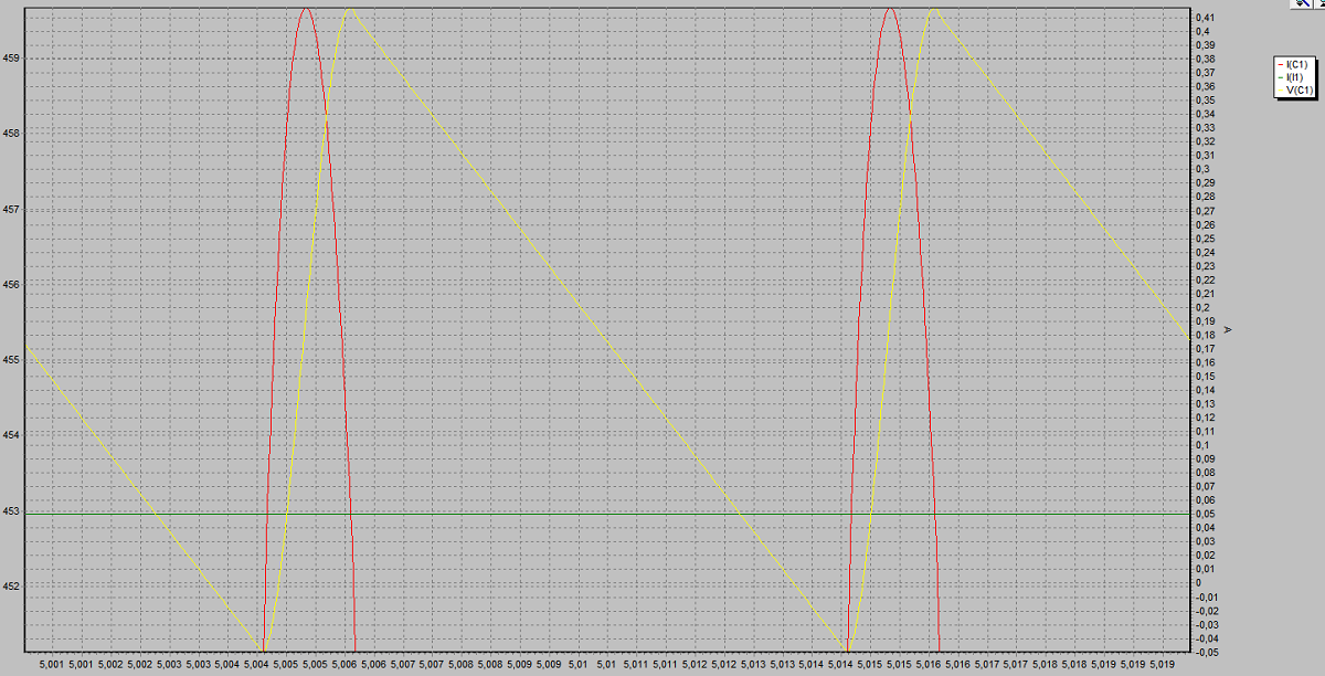 On voit que pour une intensité donnée de 50 mA, on obtient des pics de courant 8x plus élevés durant la charge du condensateur. Ces pics sont dissipés dans l'ESR via la relation suivante : Puissance dissipée = ESR x (Intensité pics)2