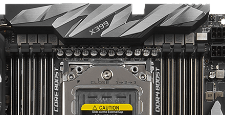 Un exemple de mauvais élève (MSI MEG X399 Creation) : les condensateurs se retrouvent entre les VRM et le processeur sans être dans le flux d'air