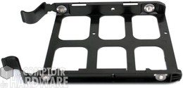 Les disques durs s'installent sur des berceaux escamotables (cf. image de droite) en plastique souple dotés eux aussi de rondelles en caoutchouc pour atténuer les nuisances sonores et/ou vibratoires. Il est à noter que ces berceaux comportent des emplacements pour y visser vos chers et tendres SSD par les trous situés en dessous, si vous en possédez (des SSD, pas des trous !).
