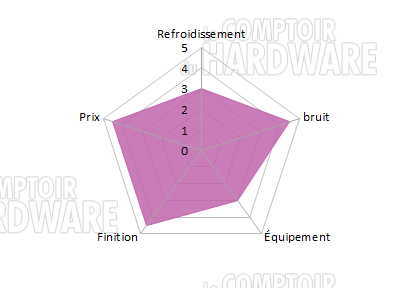 Les mesures nous l'ont montré, au moins un ventilateur supplémentaire lui sera bénéfique. Les températures relevées à pleine vitesse sont correctes, mis à part sur le disque dur qui souffre du manque d'air derrière la carte mère. La régulation de l'unique ventilateur présent n'arrange rien et met à mal notre GPU. Le point positif dans tout cela c'est que le boîtier est relativement discret à l'usage. Le choix des éléments internes permettra d'optimiser les dégagements de bruit, donc faites attention. Par contre les supports de stockage et la position de ces derniers ne sont pas idéaux. Un disque dur rapide, ou vieillissant, comme le Raptor X, transmettra énormément de vibration au châssis.