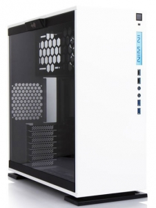 On le répète, le look minimaliste du In Win 303 est réussi. Le boîtier est beau et garde une pointe de modernité grâce aux dessins des aérations et à l'éclairage de sa façade. Cela reste sobre malgré ce que l'on peut imaginé et comme dirait ma femme "On ne se fait pas ch@%$ à chercher les ports USB pendant trois plombes !". La vitre latérale est bien intégrée, légèrement fumée et le système d'ouverture bien pensé. Il faudra par contre appuyer un peu fort pour pouvoir ouvrir le panneau si vous l'enclenchez mal lors de la fermeture. La position du bloc d'alimentation n'est pas courante pour ce type de boîtier, mais elle permet de laisser de la place pour de la ventilation en interne.