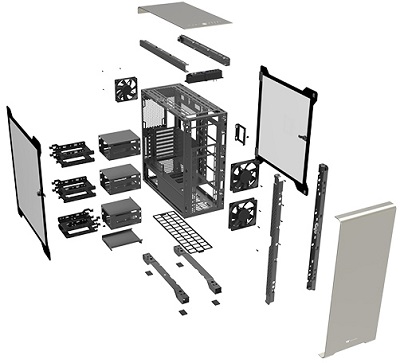 C'est à peu près tout ce que l'on trouvera à l'intérieur. Le segment visé est exigeant et on aurait aimé avoir plus de feat. dans ce modèle. Pas de hub de contrôle de la ventilation, pas de RGB (mais on ne s'en plaint pas), aucun autre agrément n'est présent, si ce n'est le système de charnière sur les panneaux latéraux. Le boîtier est très beau et il faudra s'en contenter.