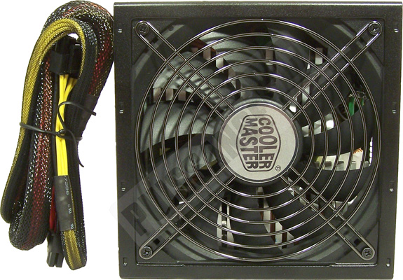 Un logo Cooler Master sur le dessus alors qu'il est bien souvent pourtant masqué par le boîtier, un logo à nouveau et même nom de l'alimentation sur le côté qui lui est exposé en cas de boîtier avec panneau latéral transparent. Cooler Master marque clairement ici son terrain et souhaite que la présence de son alimentation ne puisse passer inaperçu dans votre configuration.