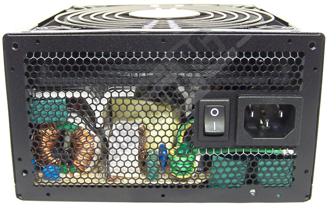 L'arrière de l'alimentation est lui constitué d'un grillage particulièrement fin, parfait pour permettre une bonne extraction de la chaleur hors du boîtier. Cette extrême finesse laisse d'ailleurs clairement apparents les composants internes et même les radiateurs pour un résultat saisissant.
