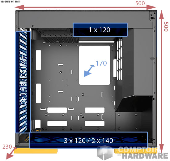 Enfin, les panneaux latéraux sont en verre trempé d'un côté et... en verre trempé de l'autre aussi. Double risque de devoir ramasser tous les minuscules morceaux en cas de drame !
