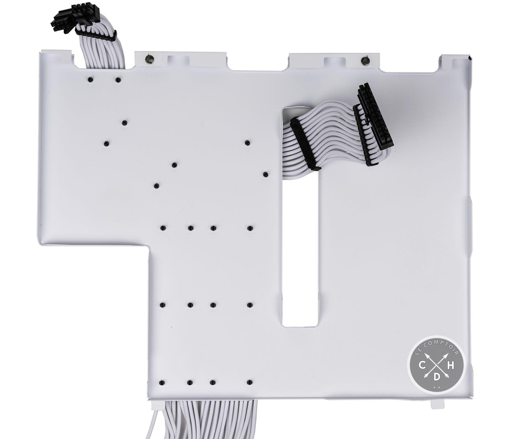 Des extensions gainées pour le CPU et la carte mère, c'est génial, sauf que quand l'un des câbles sera inévitablement trop court — oui, ce boitier semble fait sur mesure pour l'équipe du Comptoir, voir ici — il faudra sacrifier 5 minutes pour réinstaller le câble de façon appropriée. Parce que non, vous pouvez bien essayer de le tirer pour récupérer un peu de mou, il ne bronchera pas.