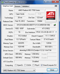 En fait la montée en fréquence est pour toutes les cartes limitées aux plages de fréquences autorisées par AMD dans l'overdrive pour la mémoire. Pour le GPU c'est bien moins spectaculaire que les HD 7900 : la HD 7750 se trouve limitée à une cinquantaine de MHz, l'absence d'alimentation externe expliquant probablement cela... Pour les HD 7770, une centaine de MHz pour la version de référence et une grosse soixantaine pour celle d'XFX, soit des gains limités s'expliquant par des fréquences de base déjà très poussées dans les 2 cas ! Voilà voilà, vous savez tout ou presque sur cette nouvelle RADEON, il est temps de passer au verdict.