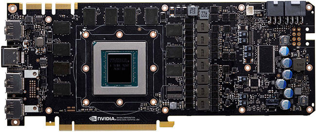 Le PCB étant identique à celui de la GTX 1080 Ti, nous vous présentons ce dernier ci-dessous. L'unique différence provient de la présence d'une douzième puce mémoire sur celui de la TITAN Xp que l'on ne retrouve pas, en toute logique, sur celui de sa petite sœur. Par contre, pas de changement du côté de l'étage d'alimentation, avec les 7 phases dédiées à l'alimentation du GPU et 2 pour la mémoire. Le GP102 au centre est entouré de 12 puces GDDR5X d'origine Micron, puisque s'agissant du seul fournisseur pour ces dernières.