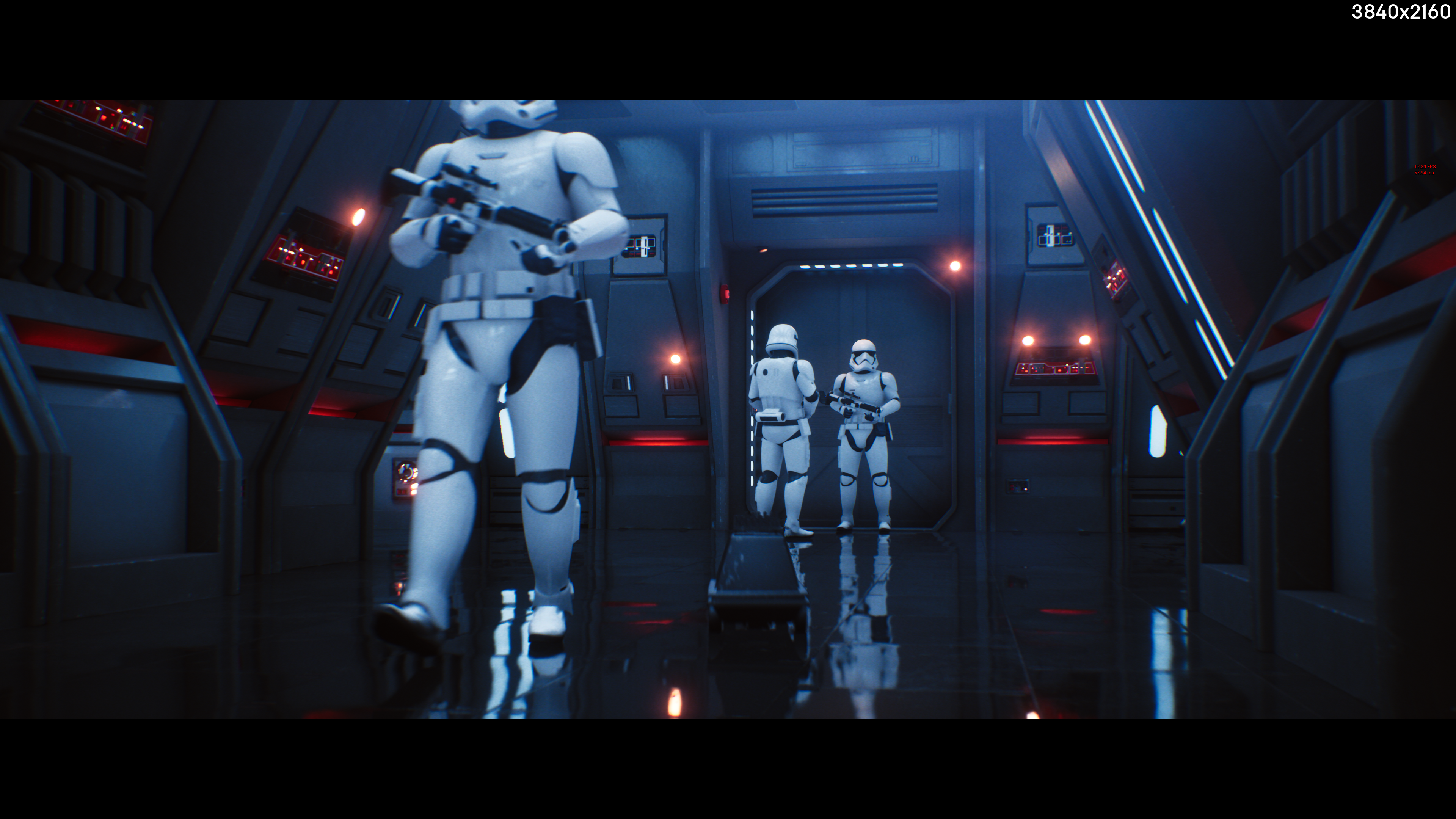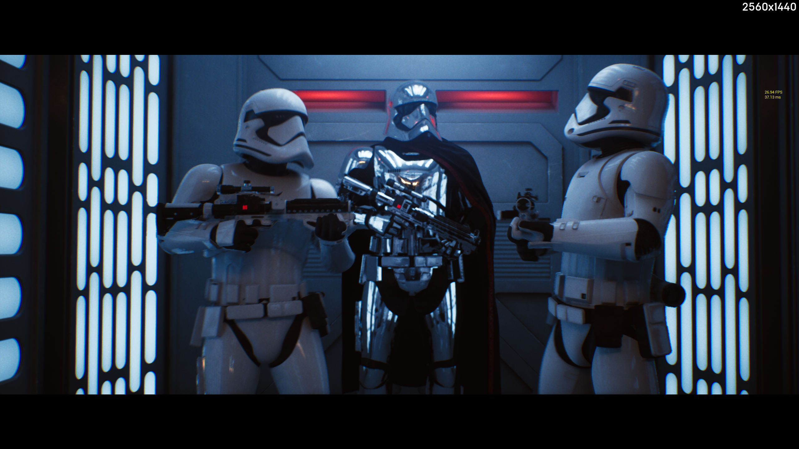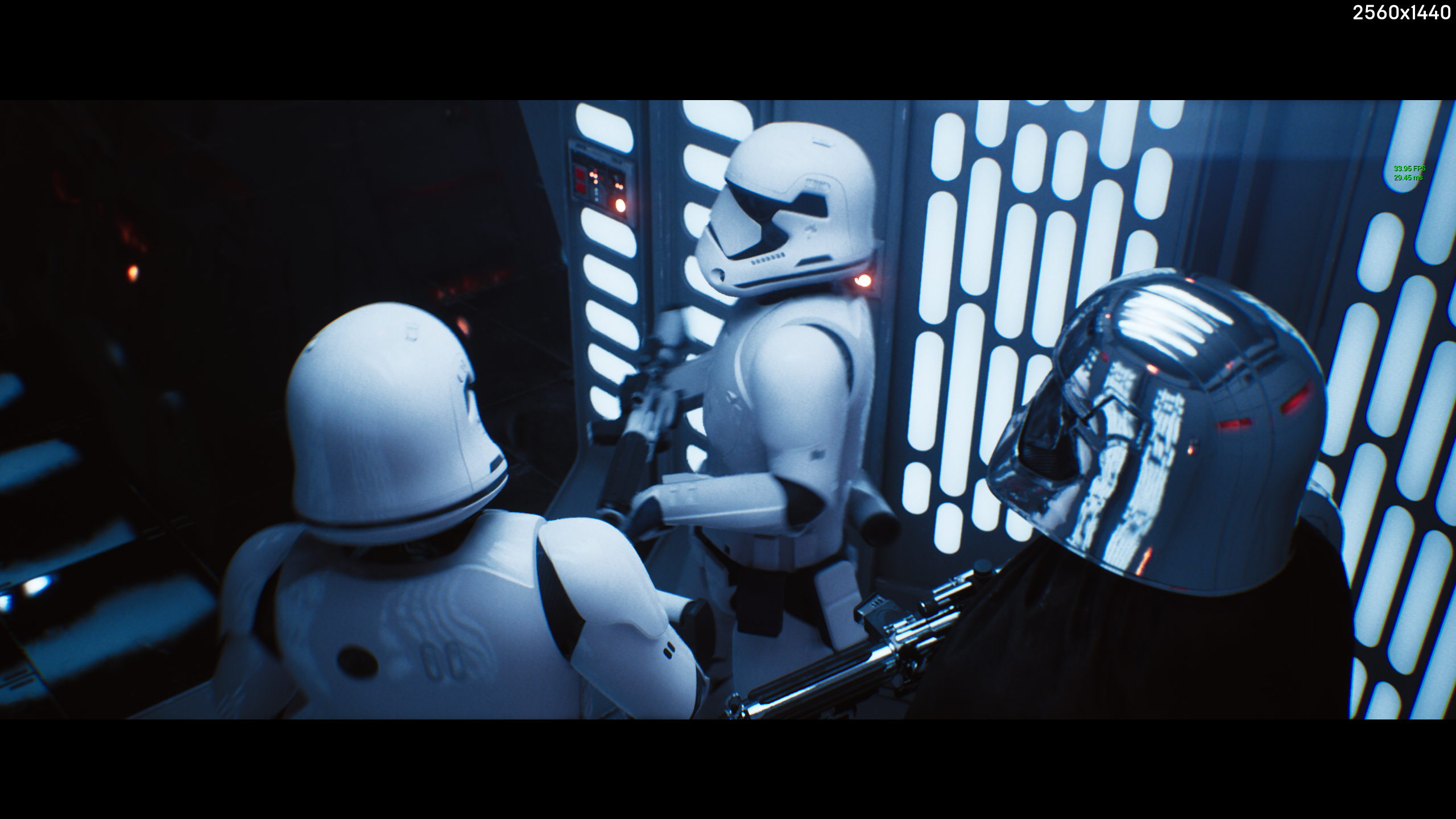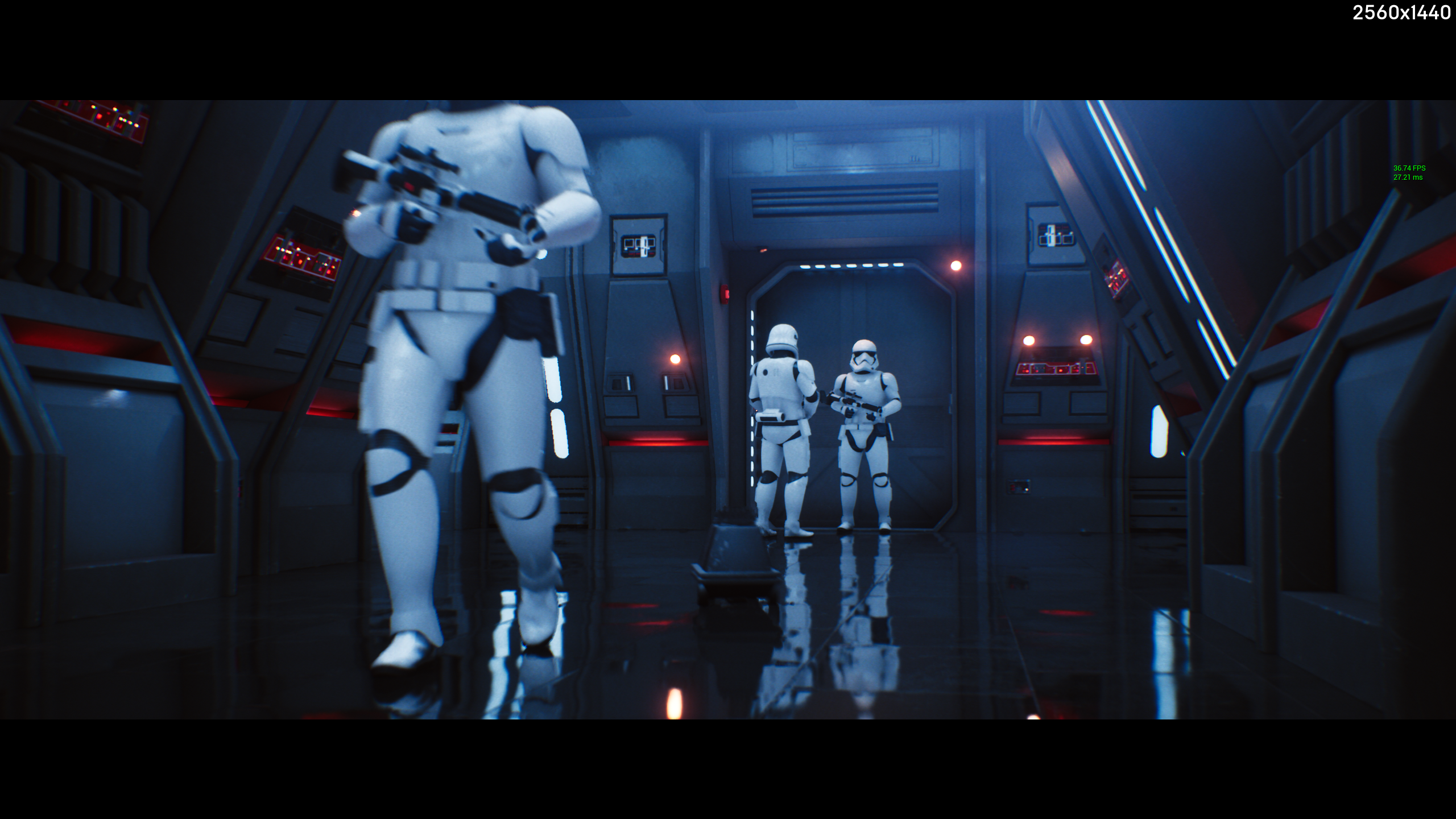 La dite démo a été conçue par ILM sur l'Unreal Engine 4, en association avec NVIDIA et LucasArt Entertainment Company. Le résultat est bluffant de réalisme (et drôle), les clichés ne rendent pas tout à fait hommage aux concepteurs. A gauche le résultat en QHD et à droite en UHD. Apparaissent sur ces clichés, le taux d'images par seconde obtenus avec une RTX 2080 Ti. Ce niveau de Ray Tracing reste terriblement exigeant même pour une telle carte, c'est une certitude.