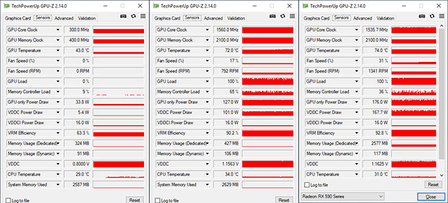 Fréquences typiques de la Sapphire RX 590 Nitro+ SE : au repos, en charge, throttling