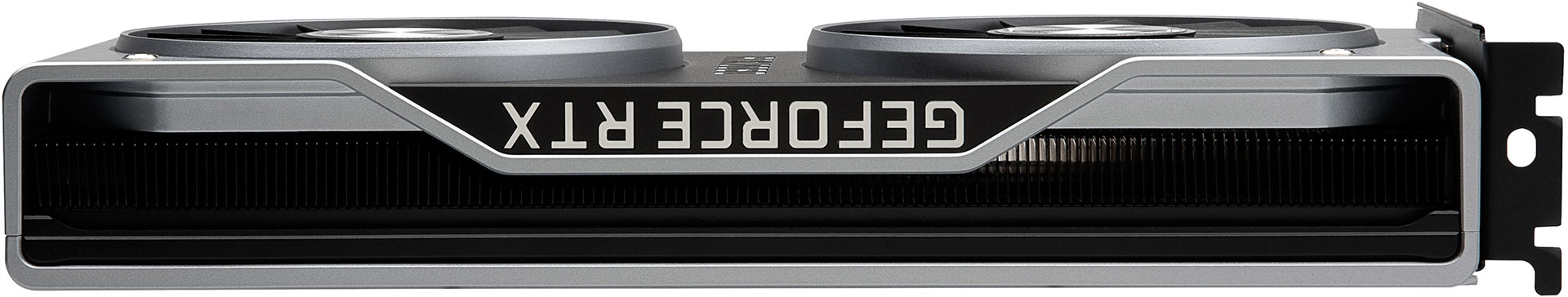 Pour ce test, NVIDIA nous a fait parvenir une GeForce RTX 2060 Founders Edition qui sera commercialisée à partir du 15/01/2019, au tarif de 369 € sur le site du caméléon. Toutefois, à l'instar de la génération passée, il faut considérer ce modèle comme un étalon en termes de finitions et conception. Chaque marque ira de ses propres cartes et refroidisseurs pour tenter de se différencier autant que possible des concurrentes, certains jouant sur les prestations, d'autres sur les prix, qui devraient débuter en-dessous de celui de cette Founders Edition, une fois l'effet nouveauté estompé. Quoi qu'il en soit, cette dernière reprend intégralement le design concocté pour cette nouvelle génération, avec un carter métallique argenté au sein duquel prennent place 2 ventilateurs axiaux de 90 mm à treize pales. Par rapport aux RTX 2080 / 2080 Ti, cette 2060 FE est plus courte à 23 cm et légère (972 g), reprenant ainsi les dimensions, masse et encombrement (2 slots) de la RTX 2070 FE lancée mi-octobre.