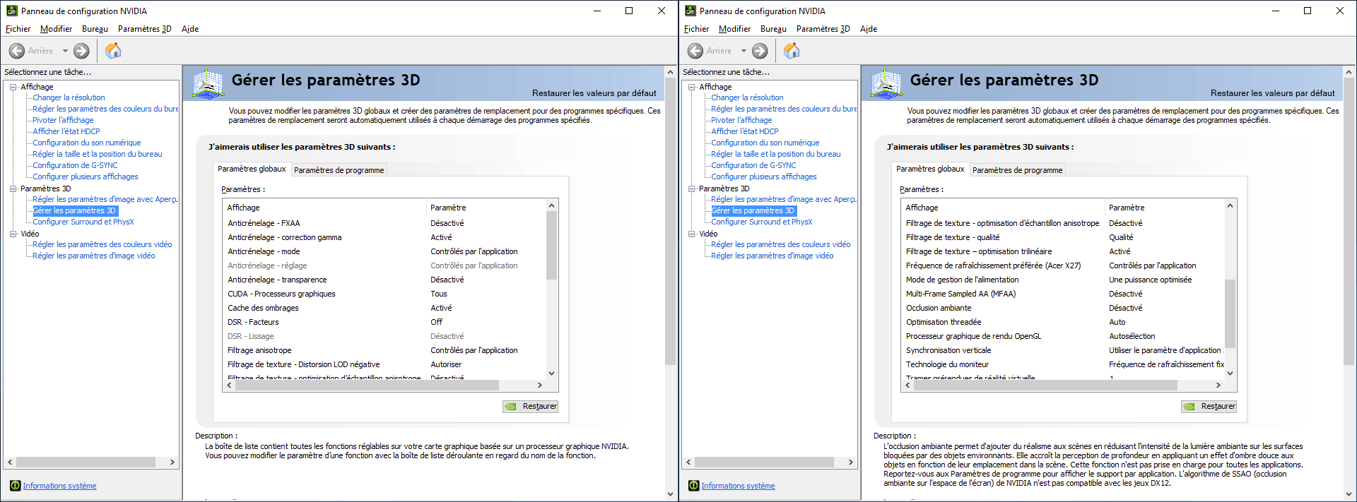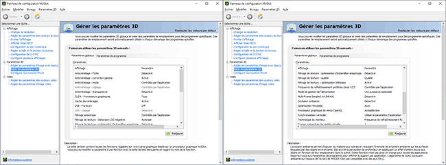 Réglages par défaut des pilotes GeFORCE