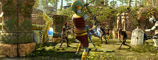 Ce jeu est issu du studio britannique Rebellion, à qui l'on doit la célèbre série Sniper Elite. Il utilise d'ailleurs le même moteur de jeu, poétiquement nommé Asura. Il remplace donc l'opus 4 de ce dernier, qui était son représentant au sein de notre précédent panel de test. L'action se déroule dans l'Egypte des années 30 et met en scène une brigade plutôt spéciale, confrontée à Seteki, reine diabolique et ses légions de momies. Visuellement, ce jeu ne restera pas dans les anales, sans être laid pour autant. Alors qu'il était possible d'opter pour une version DX11 ou DX12 de Sniper Elite 4, le premier choix disparaît au profit de Vulkan. Ce n'est pas un problème dans le sens où les performances sous DX12 étaient supérieures à celle de DX11, c'est encore mieux avec Vulkan et ce quelles que soient les cartes. Nous avons donc retenu cette API, avec toutes les options au maximum et mesurons les performances à l'aide du benchmark intégré au jeu (maintenu à jour via Steam).