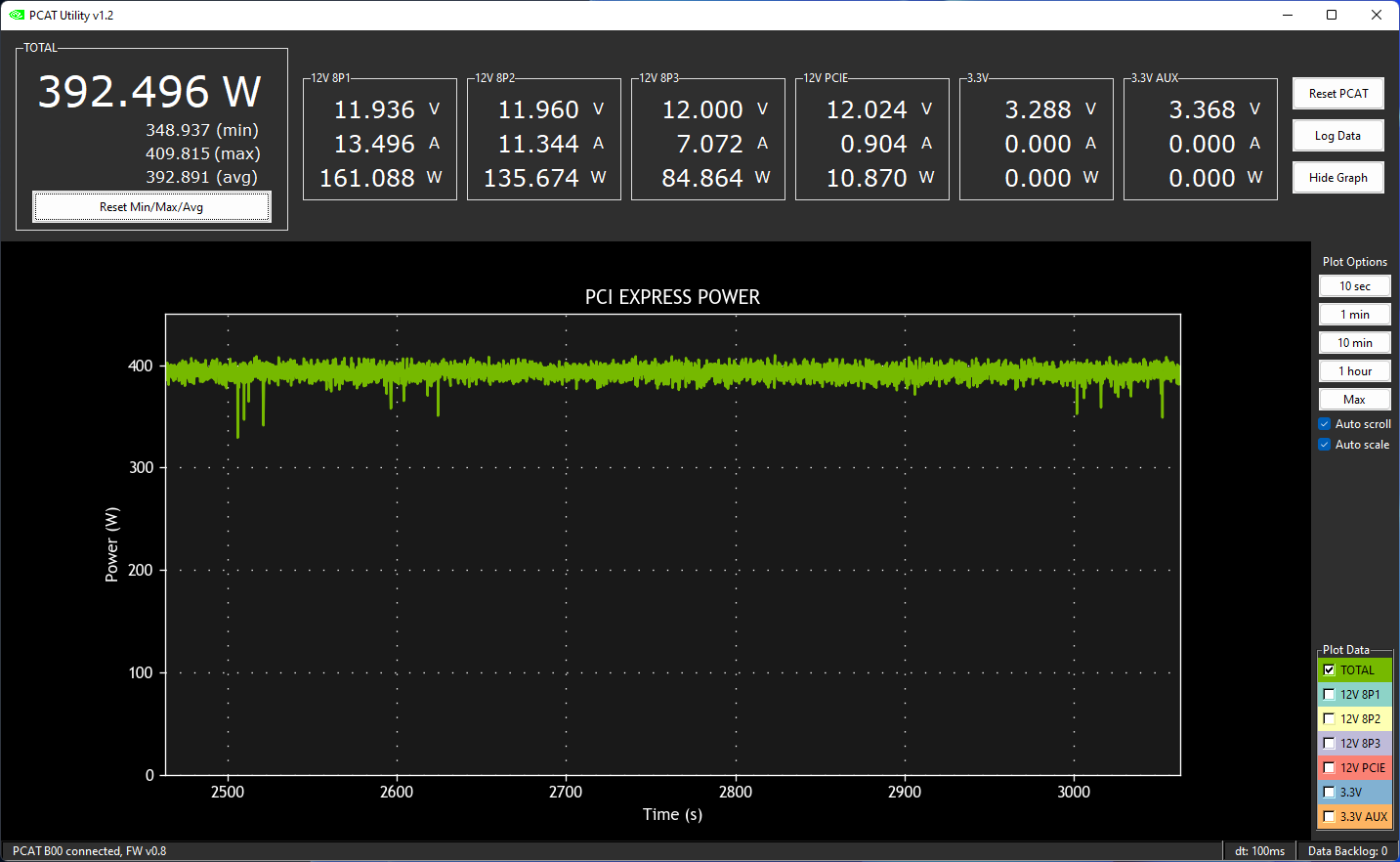 Pour déterminer la consommation des cartes graphiques (seules), nous avions introduit fin 2015 un protocole s'appuyant sur un Riser PCIe x16 à partir duquel nous "extrayions" les différentes alimentations 12 V et 3.3 V fournies par ce port. Nous mesurions ensuite les tensions et intensités sur ces alimentations, ainsi que celles externes (connecteurs PCIe à 6 ou 8 pins), à l'aide de 3 pinces ampèremétriques Fluke 325 et d'un multimètre Fluke 179. Cela nous permettait de calculer la consommation réelle des cartes. Nous utilisons à présent PCAT, qui est en fait une version professionnalisée de notre protocole, tout en contrôlant certaines mesures de manière aléatoire, via notre précédent kit.
