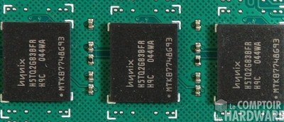 Pour une fois, nous n'avons pas à batailler pour deviner l'origine des puces, elles ne sont pas rebadgées : H5TQ2G83BFR de chez Hynix qui est facilement compréhensible après lecture de la notice (disponible ici en PDF). La densité des puces est de 2Gb soit 256Mo ce qui est logique (2x8puces x 256Mo = 4Go), et le H9C indique de la DDR3-1333 9-9-9 (et non 1600 9-9-9 !), une température et une tension "standard". Comme on est cool, on vous donne même le lien des puces concernées chez Hynix ici. Pour ceux qui se posent la question : "dans quel autre kit pouvons-nous trouver ces puces ?", nous avons trouvé les G.Skill Ripjaws F3-12800CL7D-8GBRH mais qui tournent à 1600MHz CL7 @ 1.6V. Voilà qui est de bon augure quant à la capacité d'overclocking des p'tites barrettes vu la réputation des Ripjaws dans cet exercice.