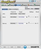 Le gros logiciel, c'est incontestablement Easy Tune 6. Avec ça vous allez pouvoir overclocker, monitorer, ajuster tout ce qui est possible de l'être parmi l'épine dorsale CPU/GPU/RAM/Ventilation. Par défaut, ET6, ce sont 6 onglets ayant chacun une fonction précise. Les deux premiers sont une sorte de CPU-Z relifté pour le CPU et la RAM, de l'information uniquement. Le 3è est plus intéressant, Tuner. Il se divise en 3 modes :